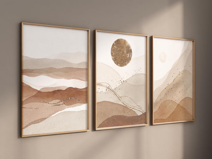 Neutral Abstract Landscape Print Set: Beige Earth Tone Boho Decor