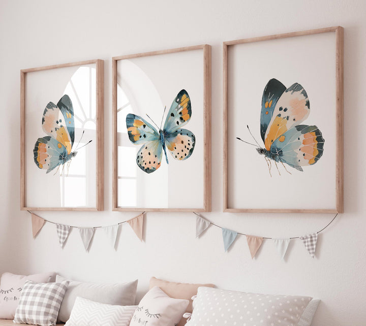 Teal & Orange Butterfly Watercolor Print Set: Boho Nursery Wall Art