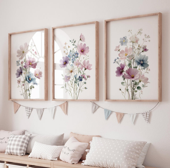 Wildflower Wall Art Set: Soft Pastel Botanical Prints, Cottagecore Decor