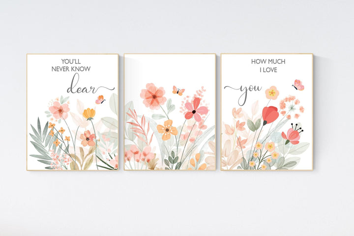 Boho Nursery wall art, Wildflower Nursery Decor, Floral Nursery, Girl Nursery Decor, you’ll never know dear how much I love you, flower