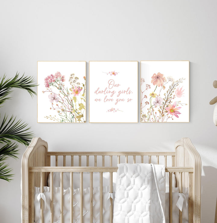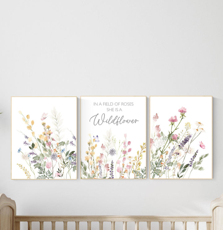Wildflower Nursery Art Prints Set: Boho Baby Girl Room Decor