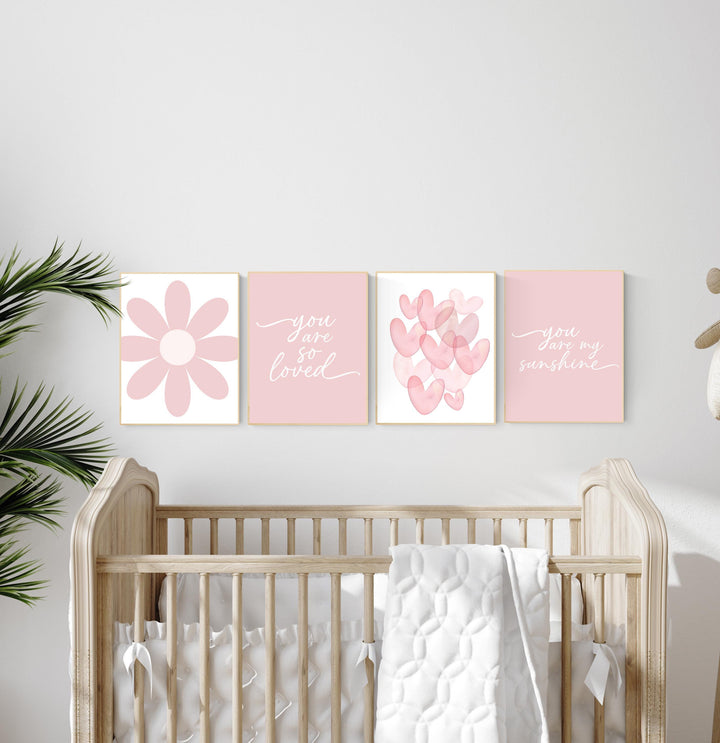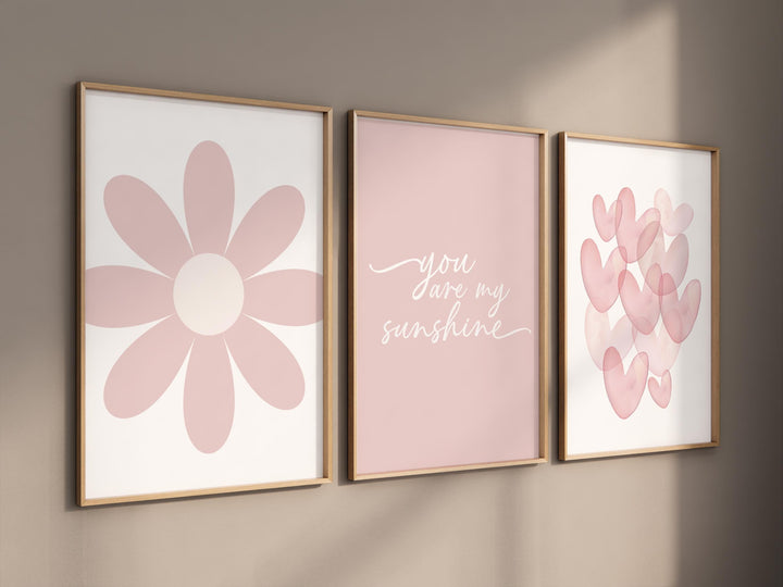Flower nursery, flower prints for girls room, you are my sunshine, blush nursery, Girl bedroom art, heart print, girls room decor, baby girl