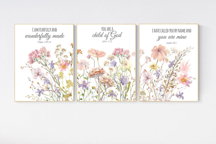 Wildflower Nursery Wall Art: Boho Floral Decor, Christian Verse