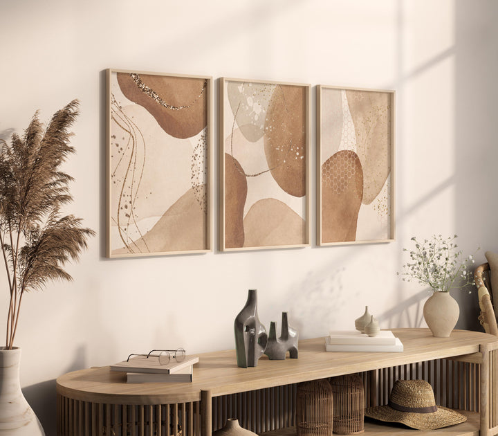 Brown Abstract Wall Art Set – Minimalist Earth Tone Prints for Modern Home Decor, Neutral Boho Aesthetic Artwork, Set of 3 Prints