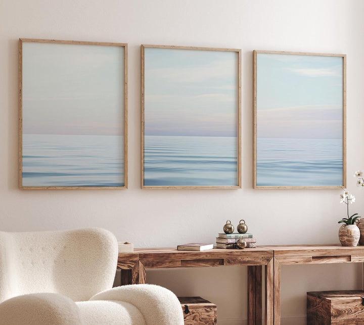 Minimalist Ocean Wall Art Set – Tranquil Sea Horizon Prints, Coastal Blue Seascape, Calm Beach Scene Poster, Modern Coastal Decor
