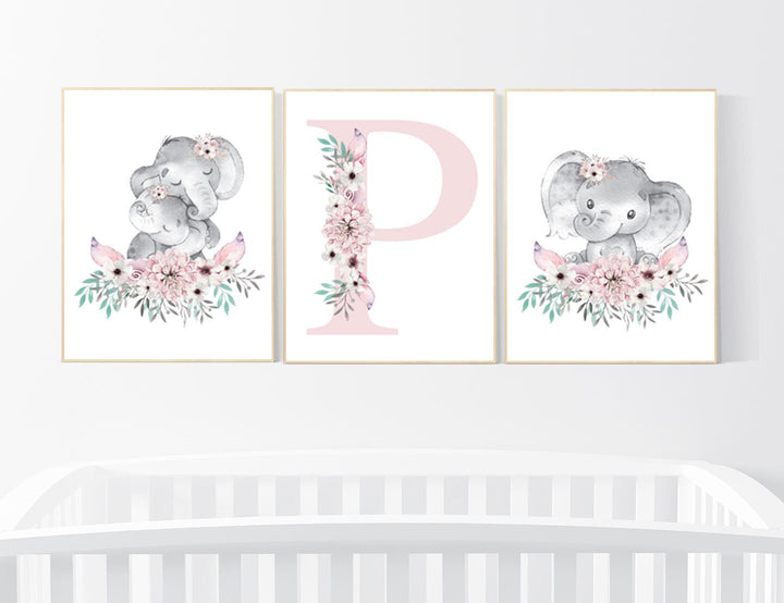 Nursery decor girl floral, nursery decor girl boho, elephant nursery wall art, nursery decor girl woodland, floral nursery, boho nursery