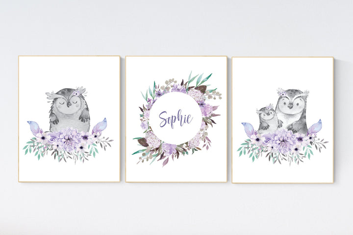Purple teal nursery, Boho baby room, nursery wall art owl, nursery decor girl, nursery decor girl floral, lilac nursery decor, lavender