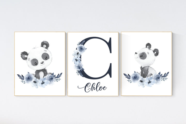 Panda nursery, navy nursery wall art, Boho baby room, nursery wall art panda, animal prints, name nursery, nursery decor girl floral, navy