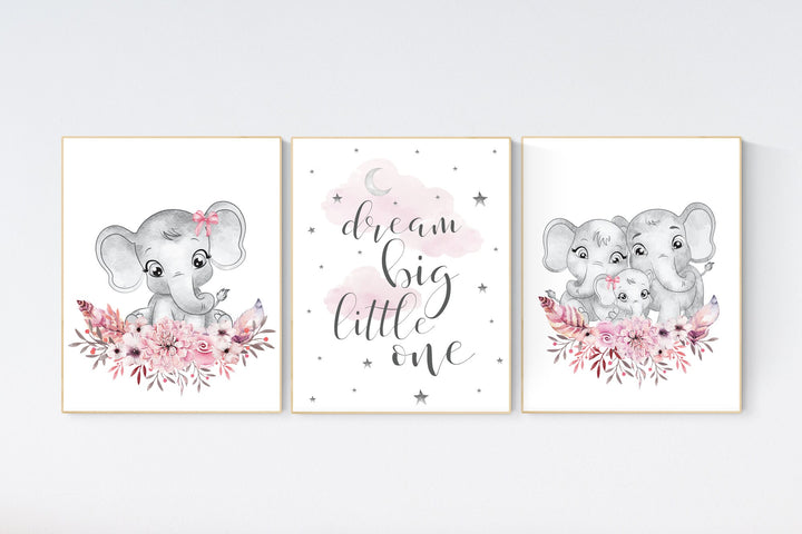 Nursery decor girl boho, elephant nursery wall art, nursery decor girl floral, nursery decor girl woodland, floral nursery, boho nursery