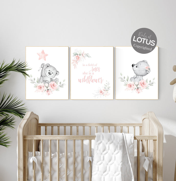 Girl nursery decor, bear nursery, Floral jungle animals, nursery decor girl flowers, blush pink, nursery decor girl boho, floral nursery