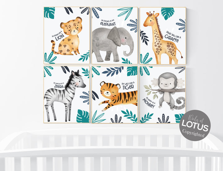 Safari nursery decor, nursery wall art animals, navy teal, safari nursery prints, Boho Nursery Prints, Safari Nursery Prints, teal and navy
