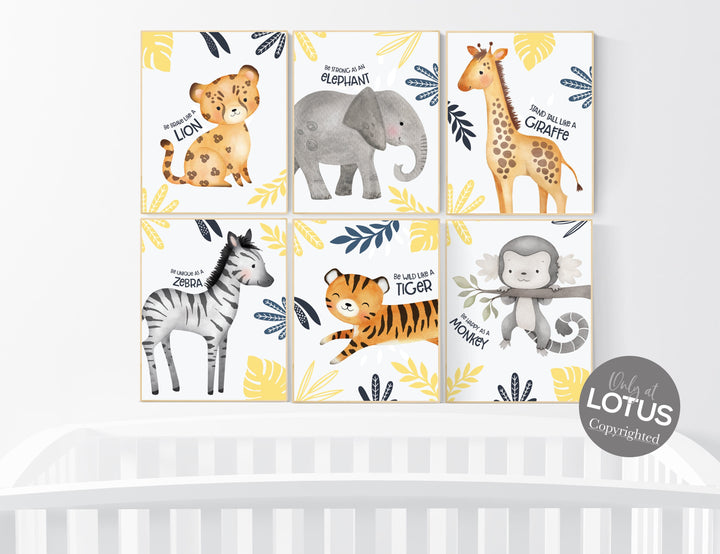 Safari nursery decor, nursery wall art animals, safari nursery, yellow nursery, Boho Nursery Prints, Safari Nursery Prints, yellow and navy