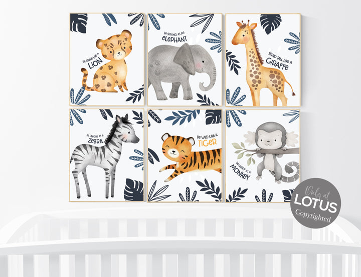 Safari nursery decor, nursery wall art animals, safari nursery prints, Boho Nursery Prints, Safari Nursery Prints, navy blue nursery decor