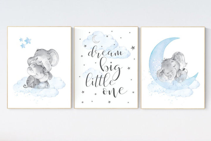 Nursery decor boy elephant, nursery wall art elephant, baby room decor boy, dream big little one, Elephant Nursery Art, Baby Boy Nursery Art