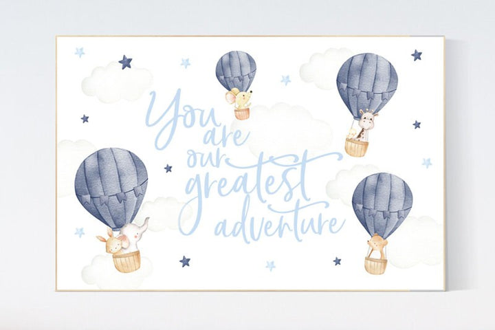 Nursery decor boy neutral, nursery decor boy travel, you are our greatest adventure hot air balloon, nursery wall art animals, moon and star