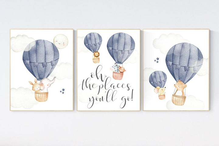 Canvas Listing: Hot air balloon nursery, oh the places you'll go nursery prints, gender neutral nursery decor, nursery wall art boy