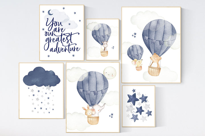 Hot air balloon nursery, Nursery decor navy blue, you are our greatest adventure, nursery decor boy, animal nursery, woodland animals