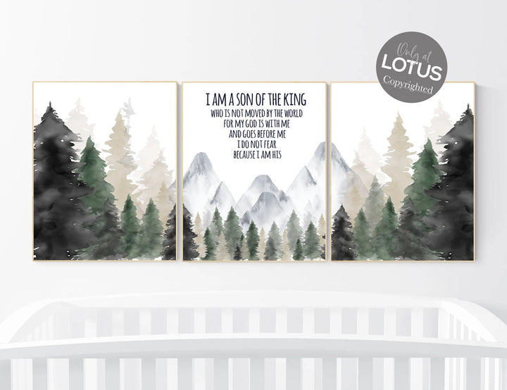 Nursery decor mountain, nursery wall art, tree nursery decor, adventure theme nursery, forest, sage green, beige, woodland animals