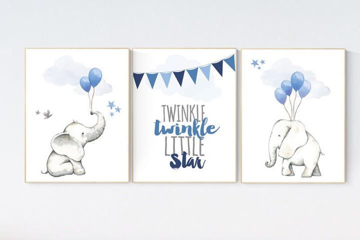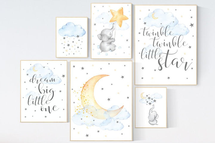 Nursery decor elephant, blue and yellow nursery, gender neutral, twinkle twinkle little star, nursery wall art neutral, dream big little one