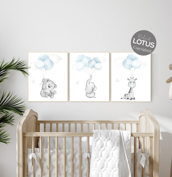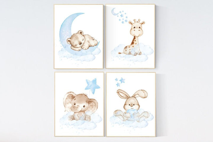 Nursery decor boy elephant, animal nursery, bunny nursery art, baby blue, bear nursery, giraffe baby room wall art