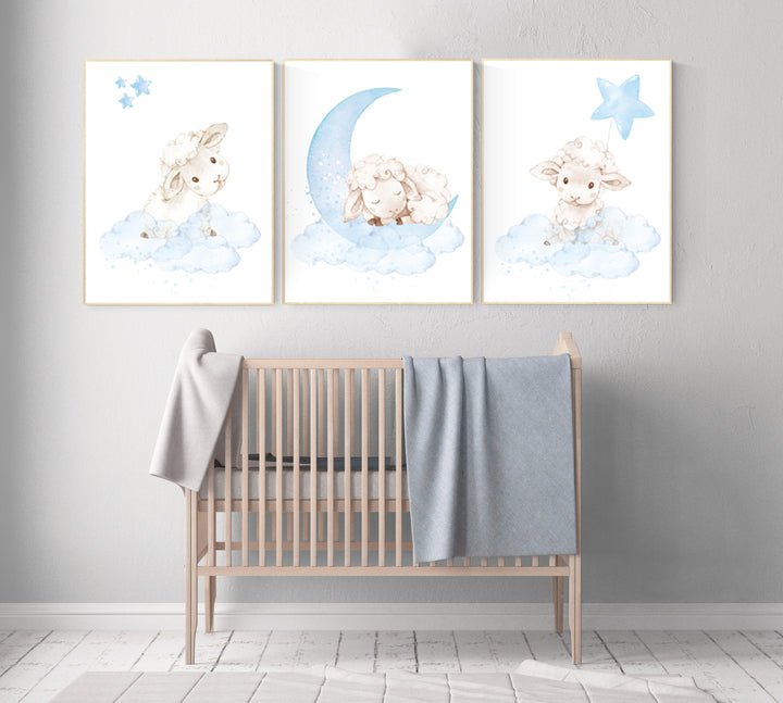 Sheep nursery decor, Nursery decor boy, nursery decor lambs, nursery wall art sheep, moon and cloud wall art nursery, boy nursery decor