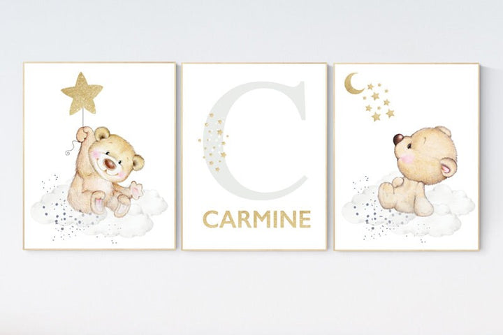 Nursery decor bear, nursery wall art boy, navy blue grey, navy nursery, cloud and stars nursery, bear nursery art, moon nursery art