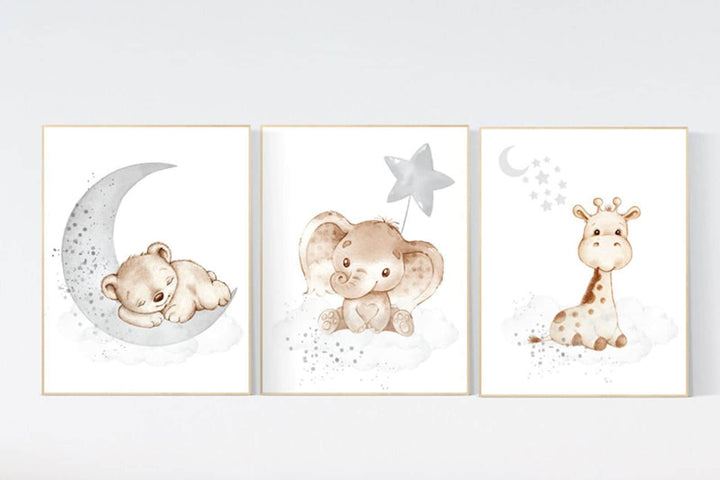 Nursery wall art animals, grey nursery, gender neutral nursery, neutral nursery, baby room decor, elephant nursery, animal prints, neutral
