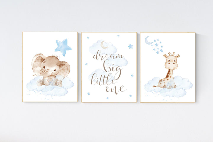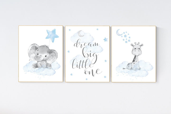 Nursery wall art animals, baby room decor blue, baby room decor, elephant, giraffe, animal nursery decor, nursery prints boy room decor