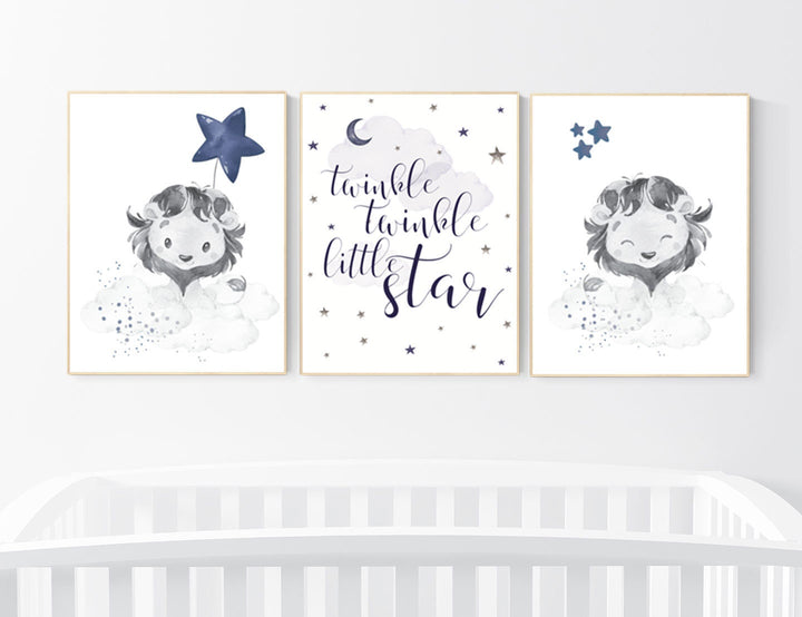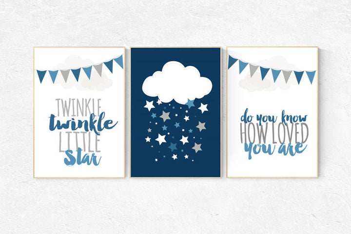 Twinkle Twinkle Little Star, cloud nursery art, Baby boy nursery decor, navy gray nursery, boys room wall art, baby room prints, set of 3