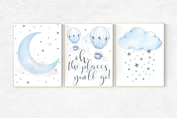 Nursery decor boy hot air balloon, oh the places you'll go, hot air balloon nursery, boys room decor, nursery prints, blue and gray nursery