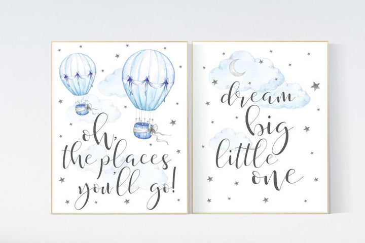 Nursery decor boy, nursery wall art boy blue, blue gray, dream big little one, hot air balloon, nursery print, oh the places you'll go