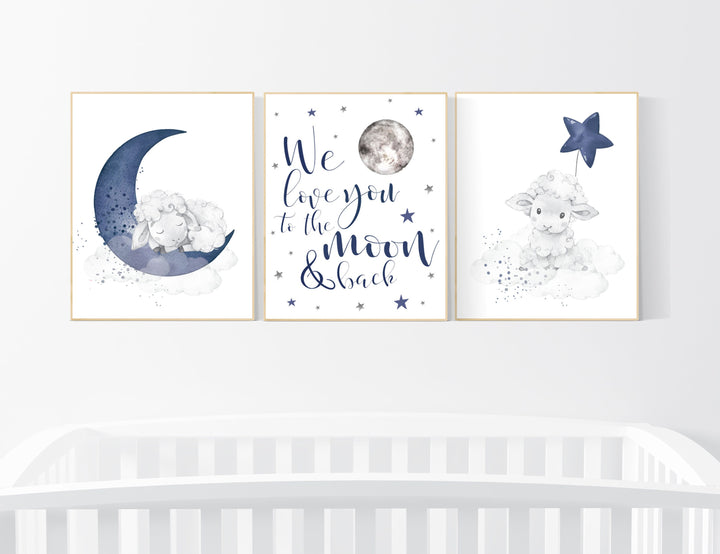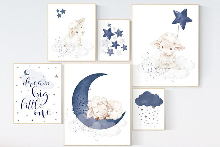 Sheep nursery decor, Nursery decor boy, nursery decor lambs, nursery wall art sheep, moon and cloud wall art nursery, navy nursery wall art