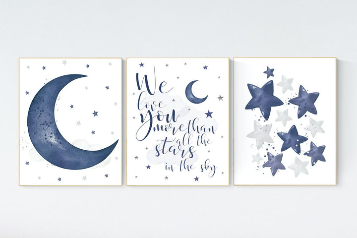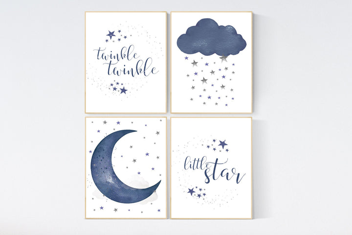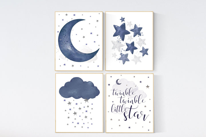 Nursery decor boy, navy nursery wall art boy, moon and stars, navy blue, navy nursery set, twinkle twinkle little star, boys room wall art