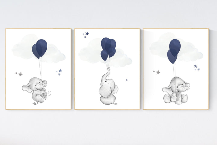 Nursery decor boy elephant, navy nursery wall art, elephant balloon print, navy blue, navy gray nursery wall decor, boy nursery ideas