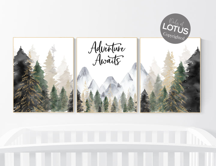 Woodland Nursery Decor, Baby Boy Nursery, Mountain Nursery, Adventure Awaits Print, Nursery decor boy, woodland nursery