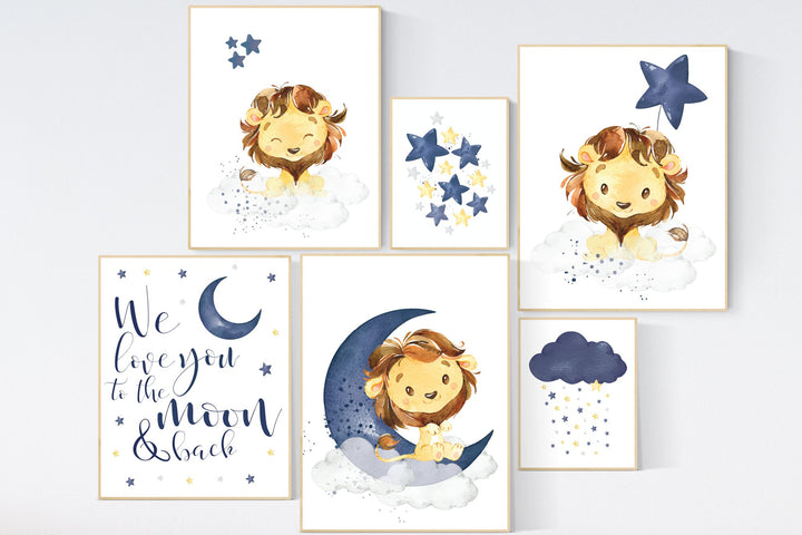 Nursery decor boy lion, boy nursery decor, moon and stars, navy nursery, boy nursery, we love you to the moon and back