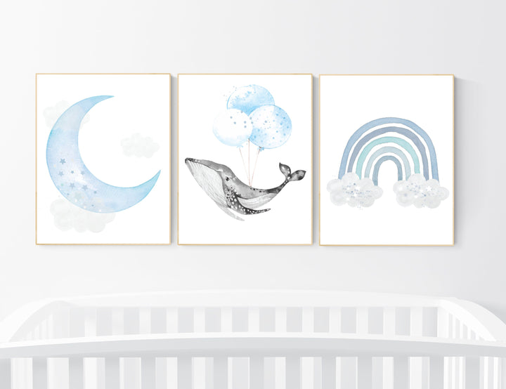 Nursery decor boy, Blue nursery decor, whale nursery, cloud and stars, blue nursery art, baby room wall art, boy nursery decor, set of 3