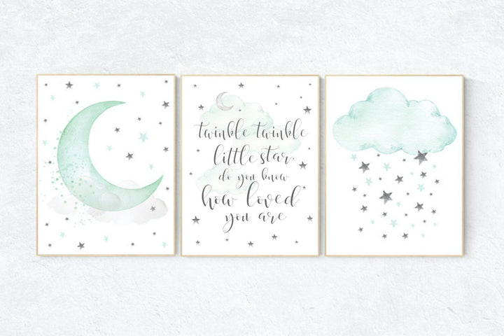 Mint nursery decor, twinkle twinkle little star, mint green nursery decor, mint green nursery, moon and stars nursery, gender neutral