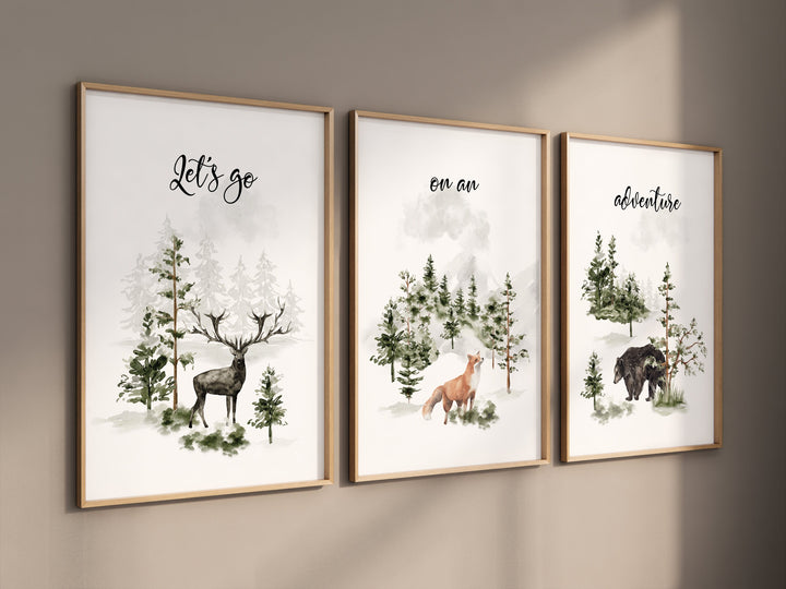 Nursery decor woodland, mountain wall art, tree nursery decor, adventure theme nursery, forest, sage green, beige, woodland animals