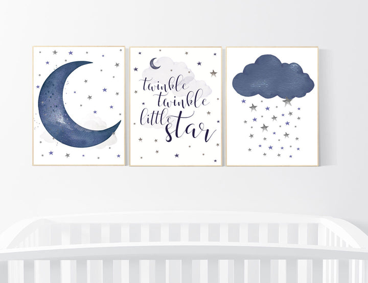 Nursery decor boy, navy nursery decor, moon and stars, twinkle twinkle little star, navy blue nursery art, baby boy nursery art, navy blue