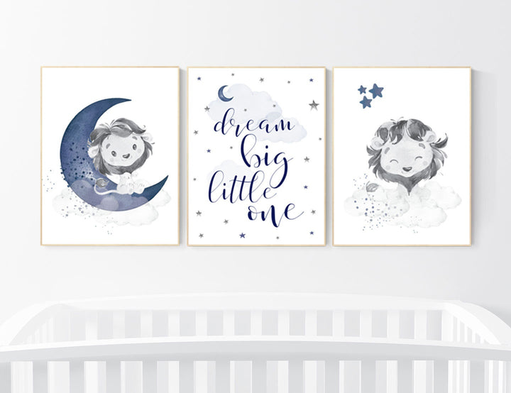 Nursery decor boy, lion nursery wall art, navy blue nursery art, boy nursery ideas, boy nursery decor, set of 3, lion nursery decor, safari