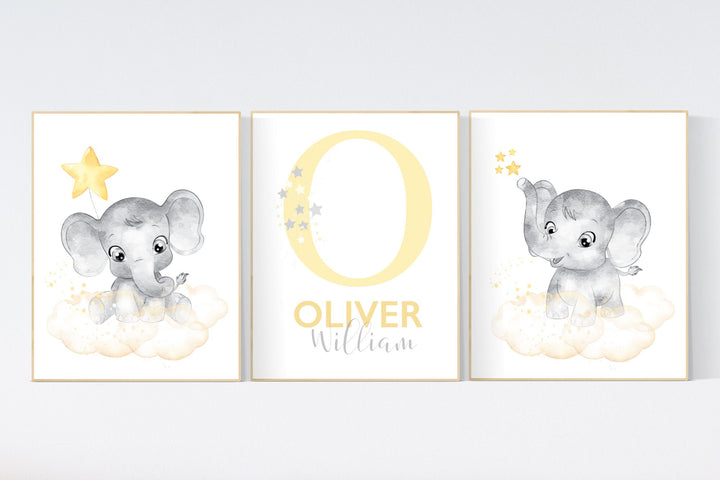 Nursery decor neutral, Yellow nursery, nursery wall art elephant, moon, stars, gender neutral, yellow and gray nursery art, baby room art