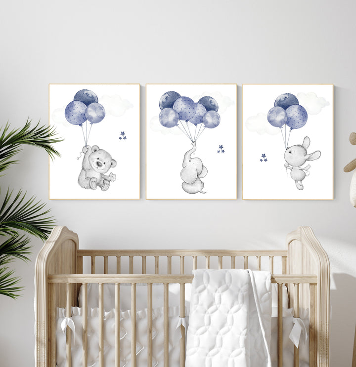 Nursery decor boy animals, navy nursery decor, elephant nursery, bear nursery, rabbit nursery, baby boy, nursery room decor, navy blue
