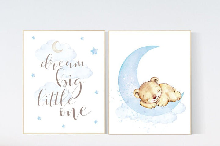 Nursery wall art bear, boy nursery decor animals, nursery decor woodland, nursery prints boy, boys room, dream big little one teddy bear
