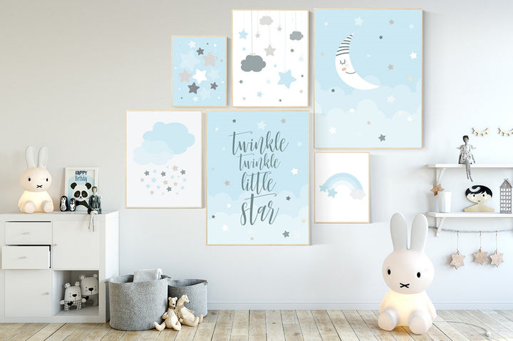 Moon print nursery, moon cloud star nursery, star print, baby room decor boy, baby room wall art, nursery set boy, nursery prints boy