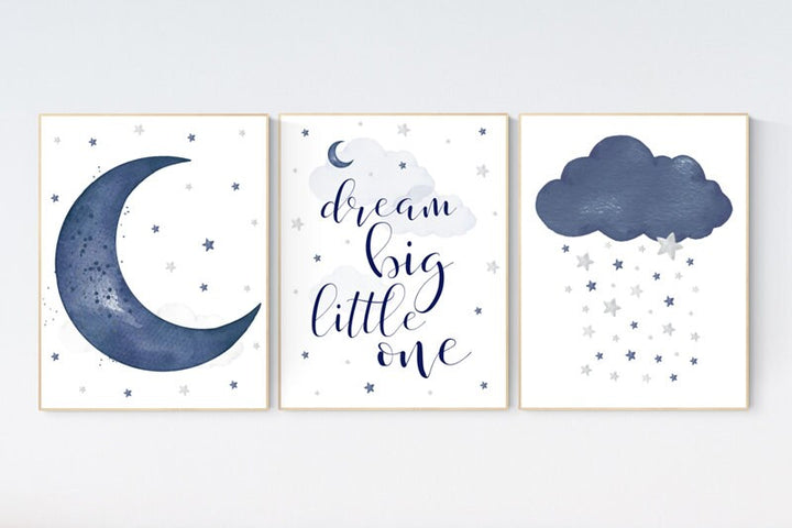 Nursery decor boy, navy nursery decor, moon and stars, dream big little one, navy blue nursery art, baby boy nursery art, raindrops