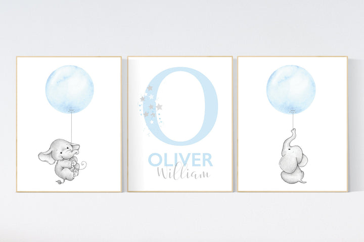 Nursery decor boy elephant, nursery wall art elephant, baby room decor boy, cloud and stars, Elephant Nursery Art, Baby Boy Nursery Art