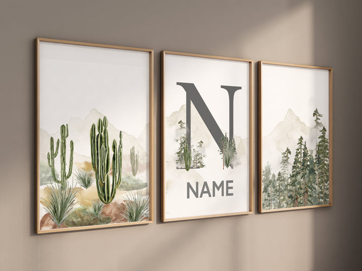 Nursery decor mountain, nursery wall art, tree nursery decor, adventure theme nursery, forest, sage green, beige, woodland animals