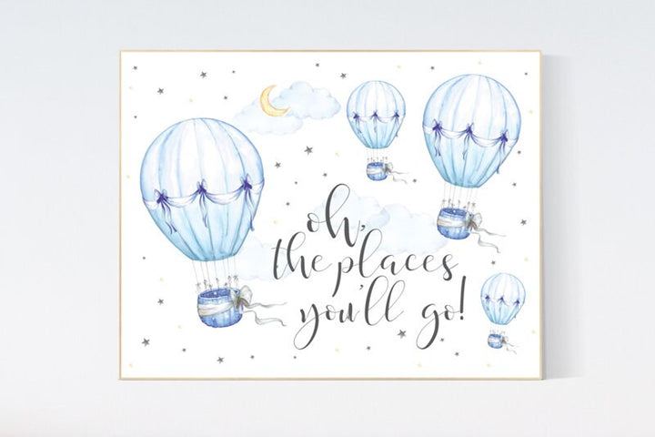 Nursery decor boy elephant, Nursery decor boy hot air balloon, oh the places you'll go, hot air balloon nursery, blue and gray nursery