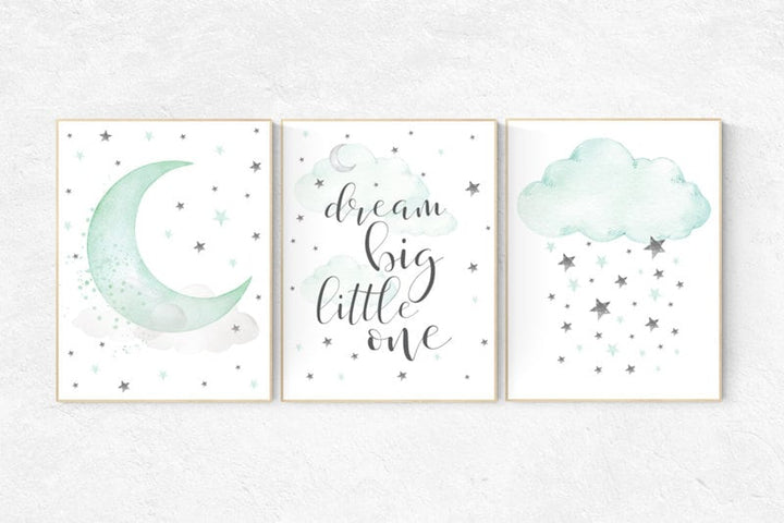 Mint nursery decor moon and stars nursery, gender neutral, dream big little one, mint green nursery decor, mint and gray nursery